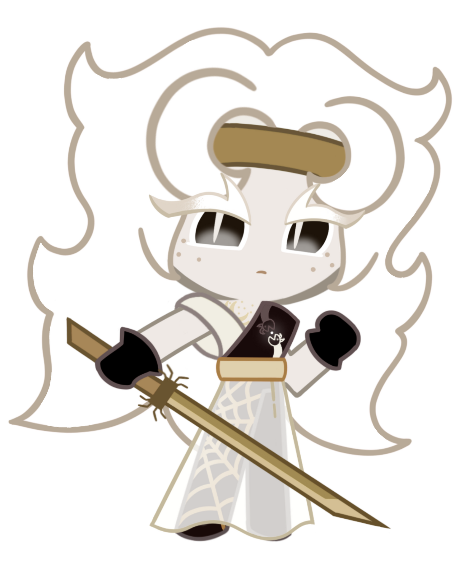 Story: The beast of apathy had created a cookie; using the warlocks magic to seal the webbed spider queen within the child. Hoping one day it will free her from the silver tree. Swift Powder Cookie was raised by the dumpling kings. After a nightmare she had regarding a run in with her vessel beast when she became an adult she awoke to find all her fathers turned to flour. Her hands covered in guilt; trauma and the realization that her touch will reduce anyone into flour. Her powers spiked. Her moving at speeds no cookie would be able to see. The six extra eyes that hide under headband deemed her with godlike speed. She ran; crying for the first time. Running; not knowing where or why but in the distance she saw a familiar black and snowy cacao fortress.