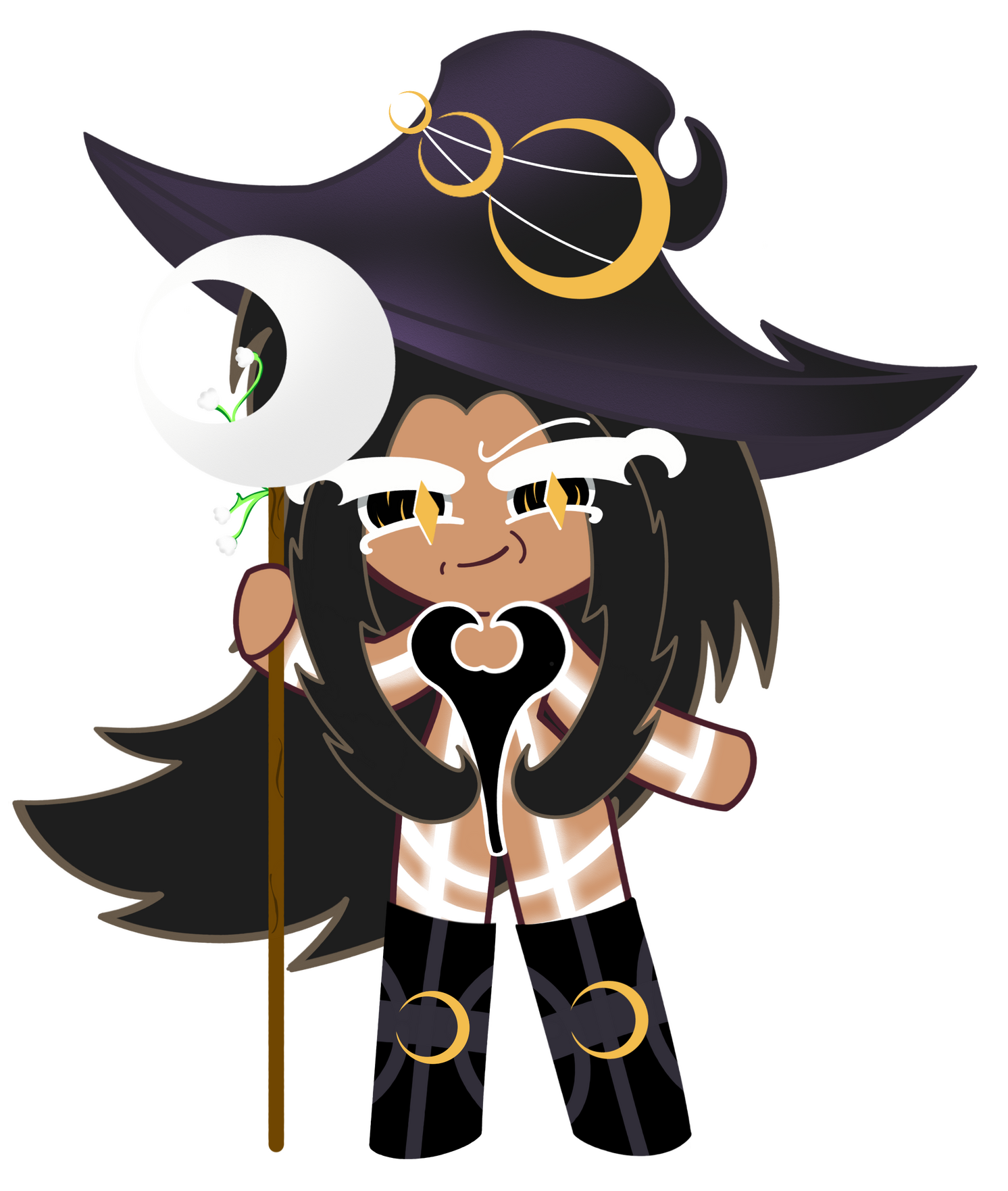 Story: Beyond the Moon on earthbread there is the moon that resides within earth. A Witch. Who was obsessed with Lilith’s ideology of refusing submission. She saw the witches flee from the hut on that fateful night. Along going with the obsidian warlock she too was curious about the cookie world. A world to be a mother to all sinning cookies was in her favor. Until she was met with forceful submission by the warlock. When she had refused he angrily cursed her into a cookie eating slave for his own gain. For years she was a human cookie hybrid feasting on cookies until one day she had eaten one who was a descendant of the ancient of vengeance. The power of it reducing her free of her curse; now she’s part of her other half, Cinnamon Sugar Cookie. An alter ego used to lure in victims. Now free from the curse the Lunar Witch must bond with her alter ego so they can both wreak vengeance on the warlock that once made them this way. Under the moon shall they never kneel to a man again.